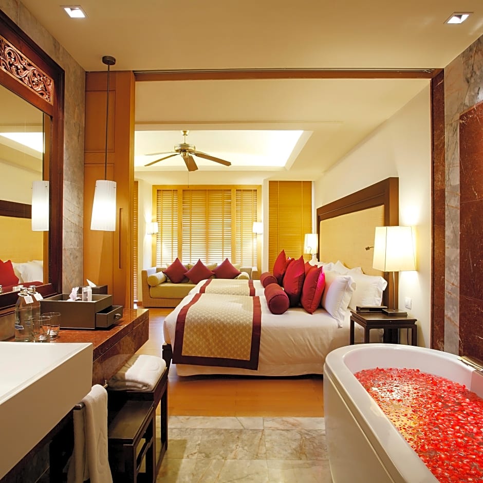 Dine around the world without leaving the resort grounds, with COAST Beach Club & Bistro serving Mediterranean flavors, The Cove Restaurant offering Asian and International dishes, and Mare Italian Restaurant bringing classic Italian fare to the table. For family-friendly fun, a water park awaits with a splashy waterslide and a free kids’ club, while some suites feature a private pool for extra indulgence. An outdoor pool with scenic views provides a sunny backdrop for lazy afternoons and poolside lounging.